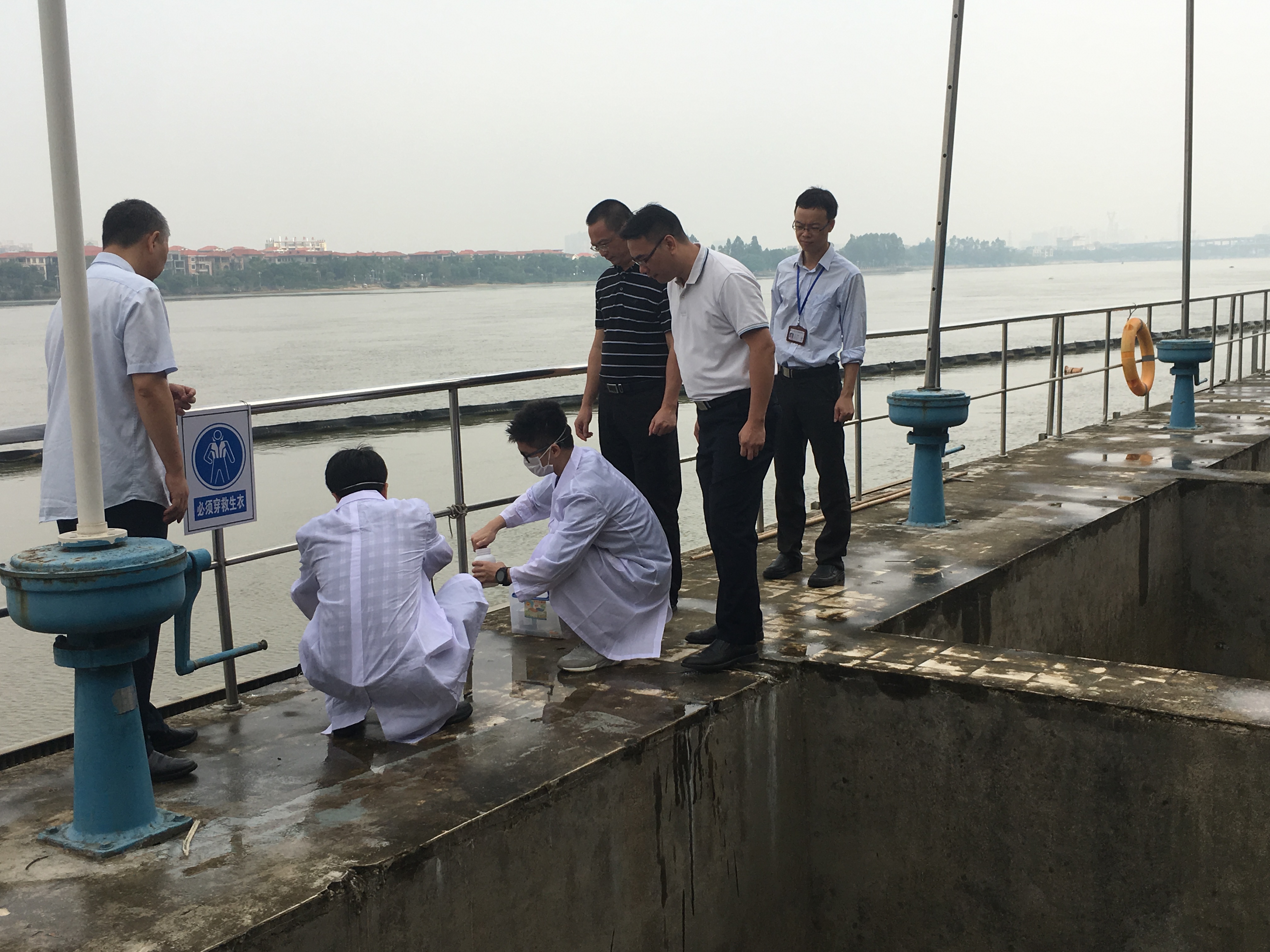 姚旭芳副主任、赵建军所长在水源水监测现场