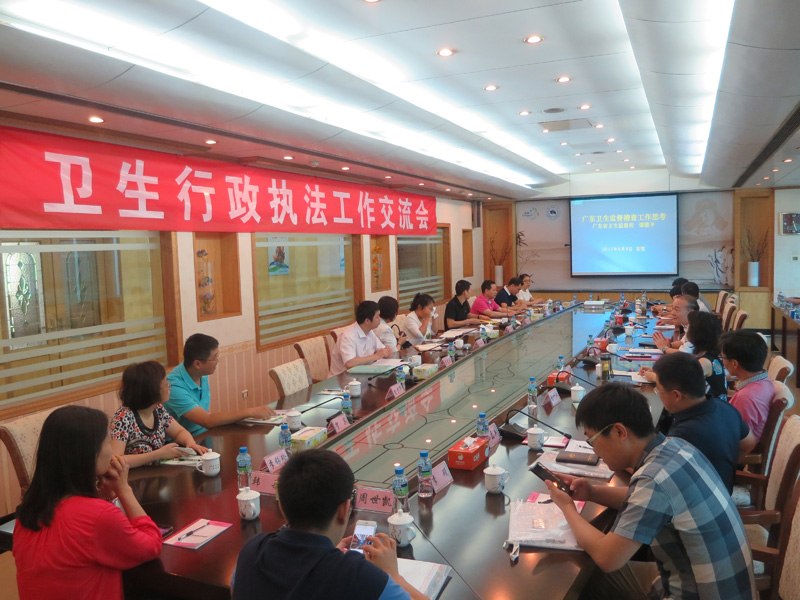 2017年6月9日下午,由国家卫生计生委卫生计生监督中心王永芳处长、张小霞副处长,国家卫生计生委综合监督局苏艺丹主任科员,广东省卫生监督所谭德平副所长、稽查科陈杰雄科长,东莞市卫生监督所肖文忠所长、李润深副所长以及部分省市及我省部分地市的专家参加的卫生行政执法工作交流会在市卫生监督所召开。