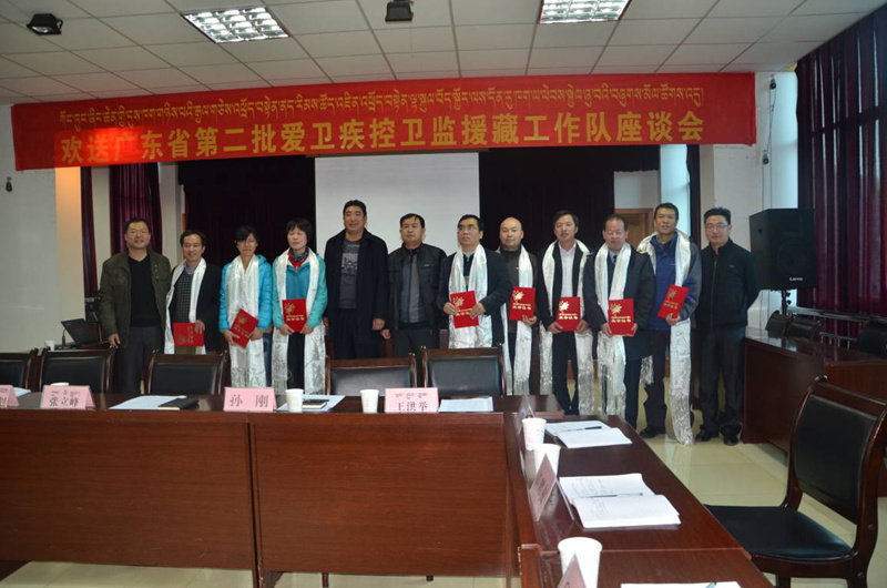 最后,林芝地区卫生局杨彪副局长宣读了《关于表彰广东省第二批爱卫疾控卫监援藏工作先进个人的决定》(林地卫党〔2014〕63号),号召卫生系统全体干部职工以他们为榜样,学习他们不畏艰辛,精益求精的敬业精神,学习他们不计较个人利益得失,乐于奉献的高尚品德,扎实工作,为林芝地区卫生事业发展做出新的更大的贡献。东莞市卫生监督所卫生监督员彭鹤权同志等8名队员被授予“广东省第二批爱卫疾控卫监援藏工作先进个人”,地区卫生局扎西平措副局长亲切地为各队员送上了哈达并颁发了荣誉证书。欢送座谈会在一派欢声笑语中完满结束。