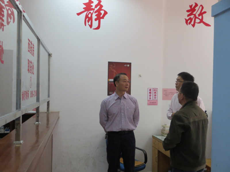 市卫生计生局陈少基副调研员(右二)了解镇(街)医疗机构监管情况
