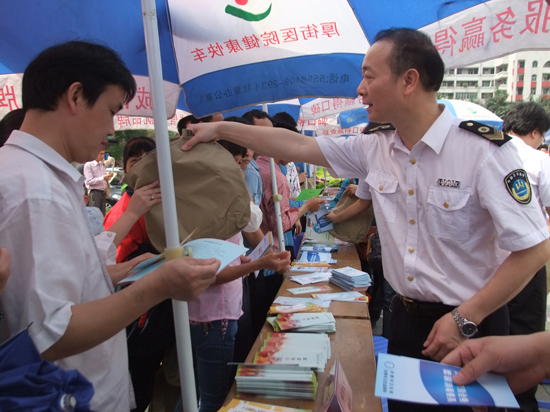 为深入开展党的群众路线教育实践活动,大力弘扬“奉献、友爱、互助、进步”的志愿者精神,本着为群众办好事、做实事的原则,市卫生监督所志愿服务队于近期在厚街广场开展了一场“如何识别合格套装消毒餐具”的志愿服务活动。该所肖文忠所长和李润深副所长亲自参与了本次宣传活动,与群众进行了一场卫生知识面对面的交流。