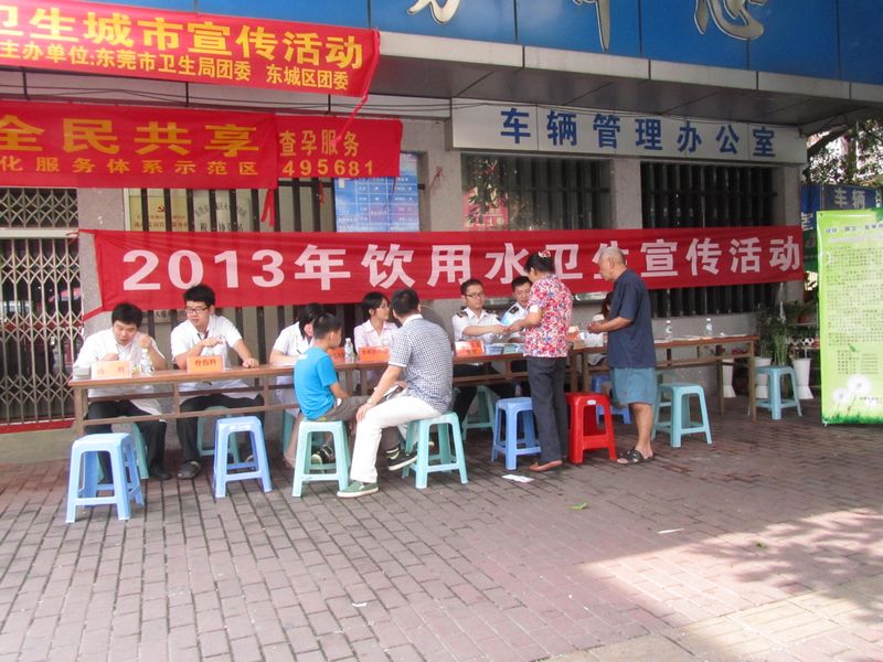 在宣传周期间,我所不断创新,形式多元化,广泛开展宣传活动。在市卫生局安排下,组织饮用水卫生专家和卫生监督员深入东城社区开展现场咨询活动,现场宣讲饮用水卫生相关法律、法规、标准及知识,派发宣传资料,解答群众咨询;利用发证窗口向各类单位派发生活饮用水卫生知识小册子,在《东莞卫生监督》期刊上开辟饮用水卫生宣传周活动专栏宣传饮用水健康知识,并将其寄发至供水单位、学校、公共场所经营单位、医院、诊所等;在东莞市卫生监督信息网站设立宣传专栏,引导群众形成科学的饮用水安全理念和正确的饮用水安全行为;制作饮用水卫生宣传标语横幅,悬挂在市场、商业街等人群密度高的地方,提高饮用水卫生知识宣传的覆盖率、知晓率;设立卫生监督投诉举报电话,并向社会公布,积极受理群众的投诉举报,及时处理群众反映的问题,切实维护群众的合法权益。本次宣传周期间,我所共寄发宣传《东莞卫生监督》期刊等宣传资料4000余份,开展咨询活动2场次。