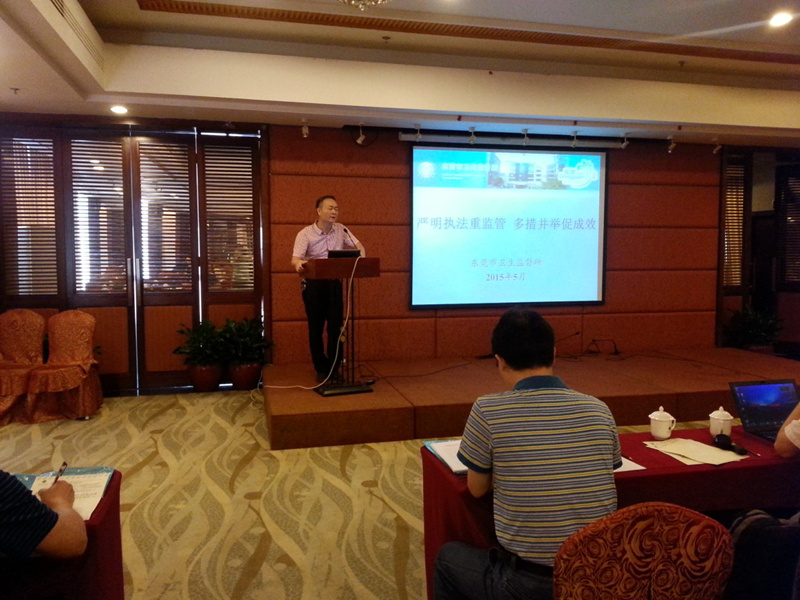 研讨会由省卫生监督所谭德平副所长主持。会上,省卫计委综合监督处周建宏科长和省卫生监督所张顺华所长分别作了重要讲话,省高级人民法院窦家应法官对放射卫生行政执法案例进行了评析。江门、东莞、肇庆、佛山等四市卫生监督所在会上进行了工作经验介绍,东莞市卫生监督所肖文忠所长代表东莞市作了题为《严明执法重监管 多措并举促成效》的放射卫生监督执法经验交流。肖文忠所长从领导重视、规范执业、源头把关、健全档案、发挥新媒体作用和推行服务型执法、“12345”管理模式、“7看7查”制以及试行风险管理等九个方面主要做法,详细地阐述了近年来我市在放射卫生监督工作上开展的工作成绩和创新举措。
