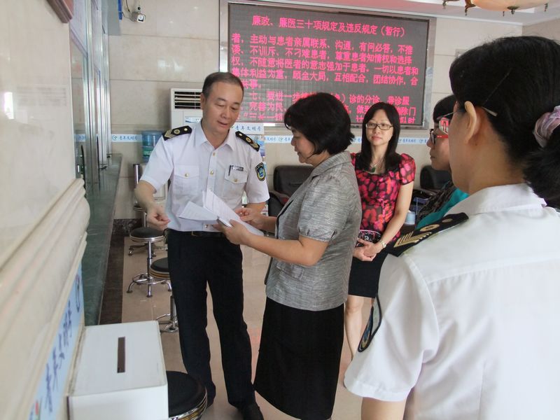 在市纪委派驻市卫生局纪检组卢赞梅组长和我所肖文忠所长的陪同下,督导组参观了我所办证大厅,现场查看了《行政办事服务满意度评价表》和《东莞市卫生监督所整治庸懒散奢及政风行风评议满意度调查表》发放和填写情况,并对我所整治庸懒散奢等不良风气和受理发证工作进行深入了解。肖文忠所长介绍了我所各项业务受理情况、服务流程、采取的便民利民措施以及青年文明号创建等情况,并向督导组汇报了我所整治庸懒散奢等不良风气采取的措施,如通过我所网站公开单位和个人庸懒散奢等问题、整改方案及整改承诺,接受社会各界监督;召开座谈会邀请监管服务对象对我所各项工作的开展进行评价;发放调查问卷积极征求群众的意见和建议等。督导组对我所整治庸懒散奢等不良风气和受理发证工作给予了充分肯定。