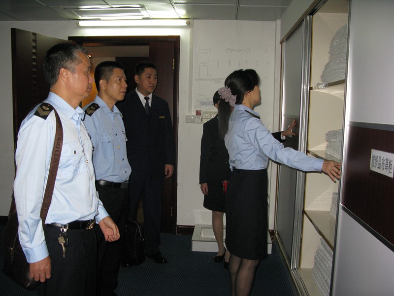 卫生执法人员现场重点检查接待酒店的清洗消毒间、布草间、客房、生活饮用水卫生和集中式空调的卫生情况,并查阅相关卫生资料及记录。根据现场监督情况,结合酒店管理方的工作介绍,卫生执法人员向接待酒店提出具体监督意见。