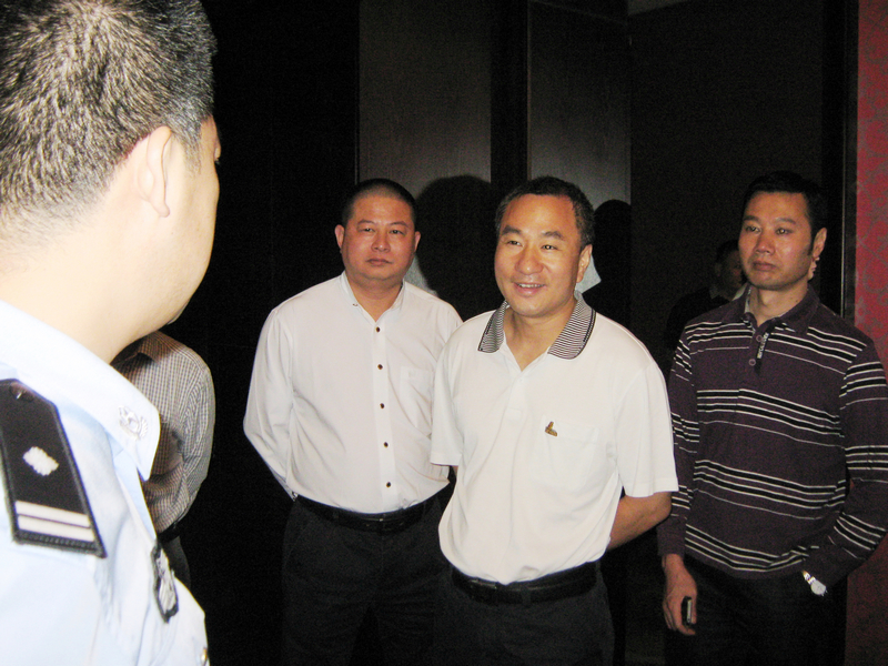 图为市卫生计生局罗小勇副局长(图中)在万江街道调研,并与当地公安部门负责人交谈。