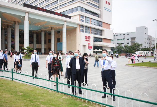 2021年11月3日上午,广东省卫生健康委员会副主任、省中医药管理局党组书记、局长徐庆锋,妇幼处处长黄毓文一行莅临东莞市第八人民医院调研东莞市市属医院高质量发展及专科发展现状。市卫生健康局局长叶向阳、副局长袁伟芬等领导及医院领导班子成员陪同。