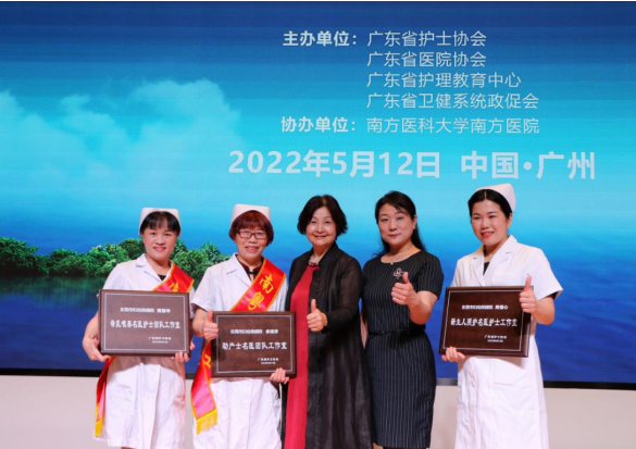 东莞市妇幼保健院党委副书记、副院长张咏梅带队参加大会。此次活动从广东省300余家医院700余名报名人员中评选出10名“南粤好护士”、10名“南粤好护士提名奖”、110名“特殊战线南粤好护士”。市妇幼保健院助产名医余桂珍主任荣获“南粤好护士”称号、护理部主任黄丽华荣获“南粤好助产士”称号,以余桂珍主任为学科带头人的助产士门诊荣获“助产士名医团队工作室”称号、以黄丽华主任为学科带头人的母乳喂养指导中心荣获“母乳喂养名医护士团队工作室”称号、以周福心护长为学科带头人的新生儿护理门诊荣获“新生儿照护名医护士工作室”称号。这五项殊荣高度肯定了医院孵育优质护理学科及学科优秀带头人、打造母婴护理专业品牌、守护人民健康、促进母婴健康的卓越贡献,践行了今年我国护士节主题意义!