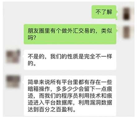 这个“租客”有些特别,一上来不是先问房子的情况,而是先发来自己的身份证件获取信任,随后在聊天中逐步树立起这样的形象:工作体面——证券公司,8岁女儿——懂事听话,租期问题——三年起步,房租问题——不讨价还价。林女士很高兴遇到这么理想的租客,就等签合同收租金了,经过一段时间的接触,林女士和“租客”逐渐熟悉起来,除了聊一些日常生活中的事情,“租客”还告诉了林女士一些“了不得”的东西:他发现了证券交易的漏洞,在特定时间进行特殊操作就能稳定升值。