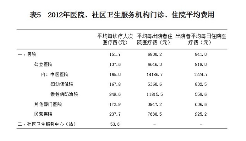 2012年全市医院平均每门诊人次费用为151.7元,其中公立医院为137.6元,民营医院为237.7元,其他部门医院为172.9元,与2011年相比,公立医院和其他部门医院的门诊费用均增加8元/人次,民营医院则增加11元/人次。社区卫生服务机构平均每门诊人次费用为53.6元,同比涨了3.4元/人次。17家二级以上公立医院(含泗安医院)的门诊人次费用为151.4元,同比增长6.4%。